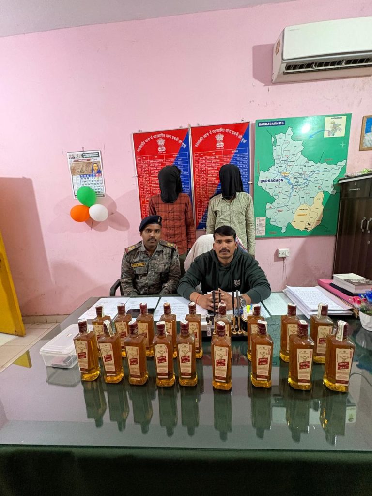 बड़कागांव। बड़कागांव पुलिस को मिली गुप्त सूचना के आधार पर बड़कागांव थाना प्रभारी कृष्ण कुमार गुप्ता के नेतृत्व में कार्रवाई करते हुए पुलिस ने सूर्यमंदिर के पास से दो युवक को गुलशन कुमार उम्र- करीब 20 वर्ष एवं रौशन कुमार उम्र- करीब 19 वर्ष दोनो पिता संजय कुमार महतो ग्राम गोन्दलपुर,थाना बड़कागांव जिला हजारीबाग के पास से 18 बोतल नकली अंग्रेजी शराब के साथ रंगे हाथ पकडा गया और बड़कागांव थाना कांड संख्या 17/26, धारा- 274/275/349 बीएनएस एवं 47 (ए) उत्पाद अधिनियम दर्ज कर दोनों अभियुक्त को न्यायिक हिरासत में भेज दिया। उक्त आश्य की जानकारी थाना प्रभारी कृष्णा कुमार गुप्ता ने दी ।