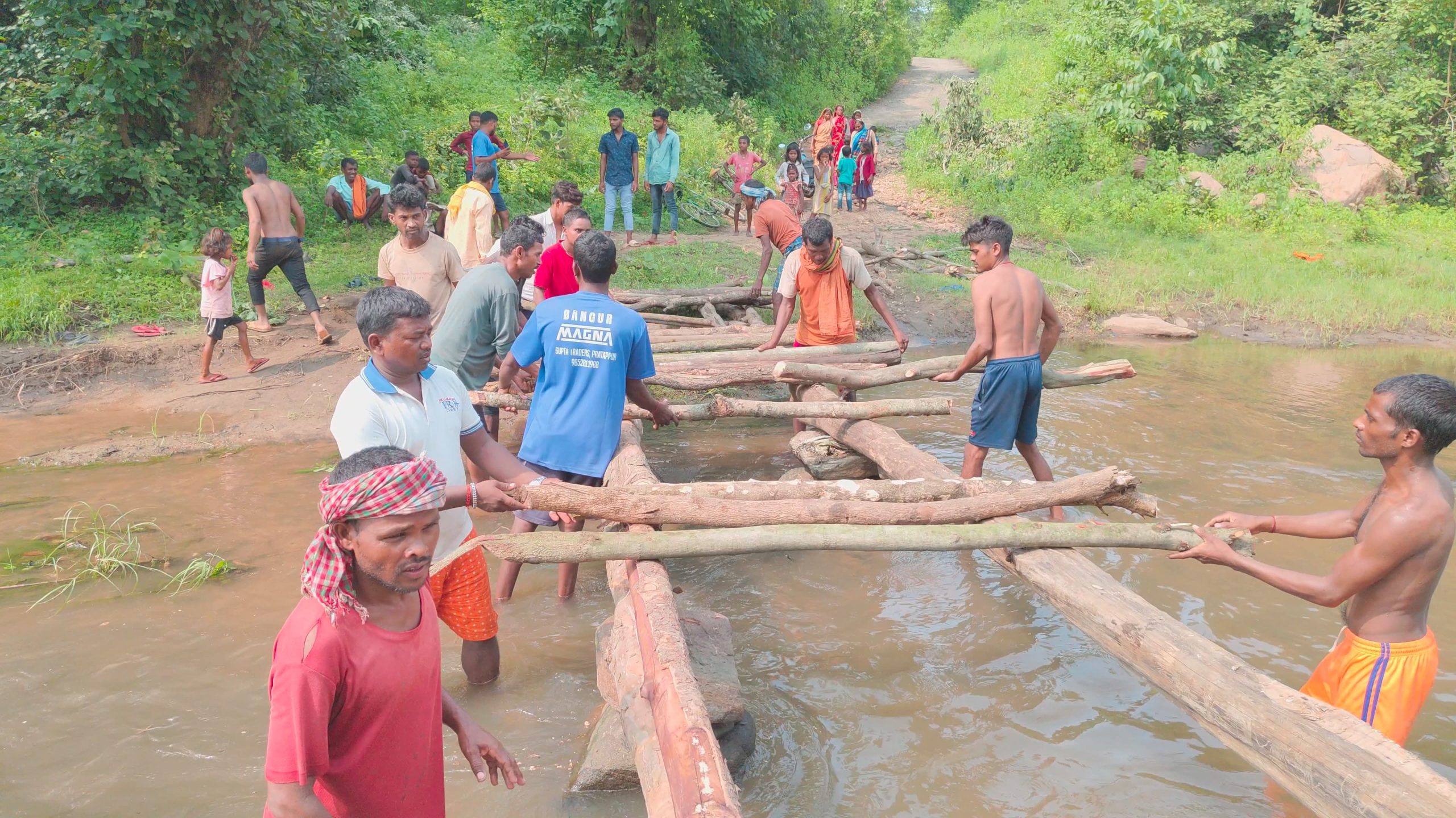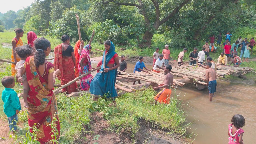 पुल बनाते ग्रामीण